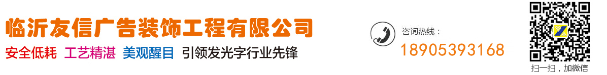 臨沂市友信廣告裝飾工程有限公司是一家從事LED外露發(fā)光字制作、外漏LED銃孔發(fā)光字、臨沂亞克力發(fā)光字、不銹鋼發(fā)光字、霓虹燈、銅字標(biāo)牌、樹脂字、樹脂發(fā)光字、環(huán)氧樹脂發(fā)光字等發(fā)光字,所以說臨沂發(fā)光字行業(yè)比較有優(yōu)勢,是不銹鋼字牌、鈦金字牌、金箔字、貼金字、水晶字、不銹鋼燈箱字、LED燈箱字、發(fā)光燈箱牌、以及鋁合金導(dǎo)向牌、弧面標(biāo)牌等設(shè)計與施工的公司。
